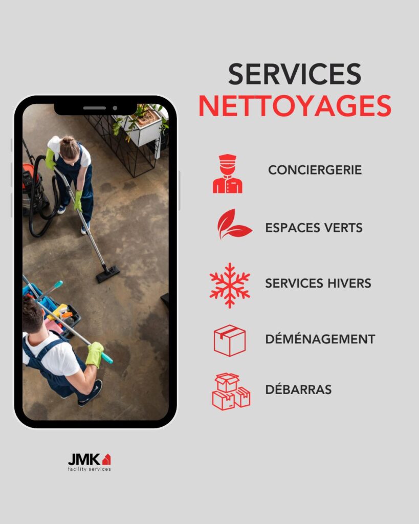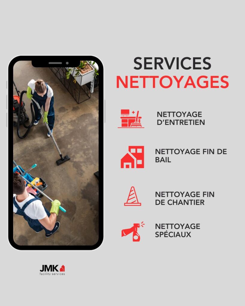JMK Facility Services propose des interventions rapides, notamment pour des nettoyages urgents (fin de bail, vitres, espaces commerciaux).